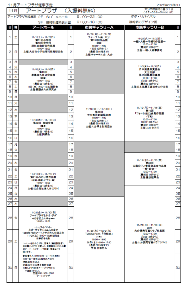 アートプラザ11月催事予定表