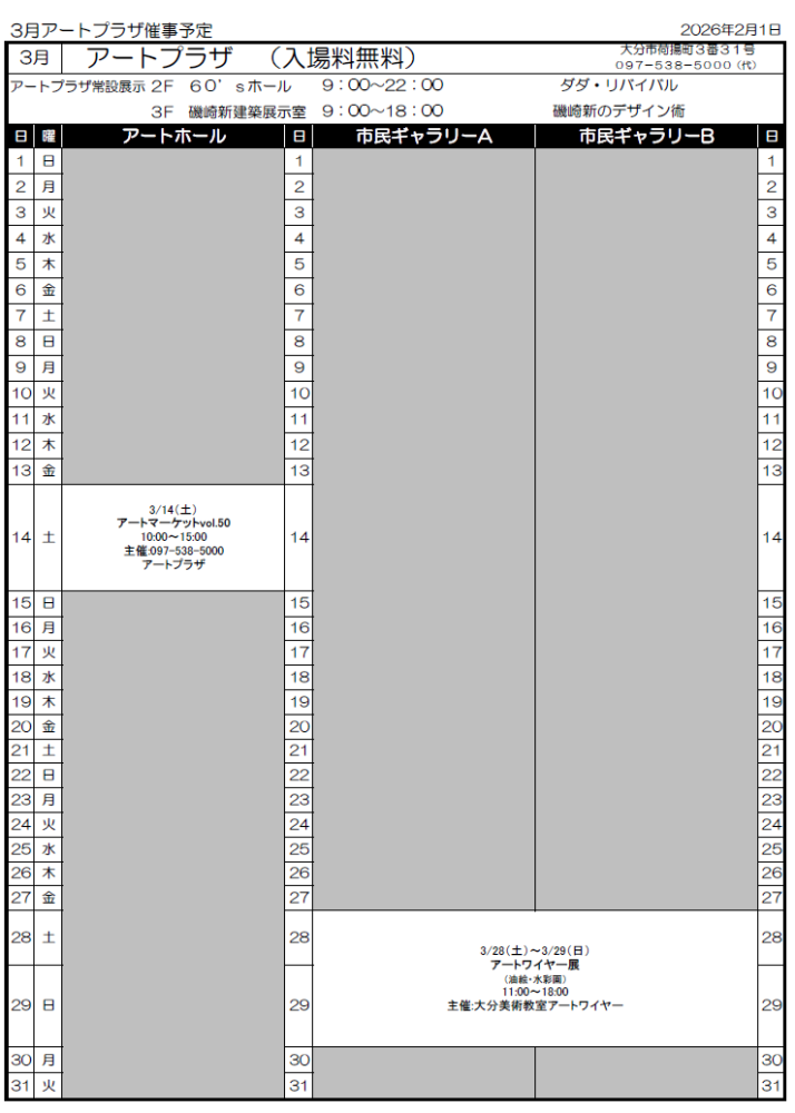 アートプラザ3月催事予定表